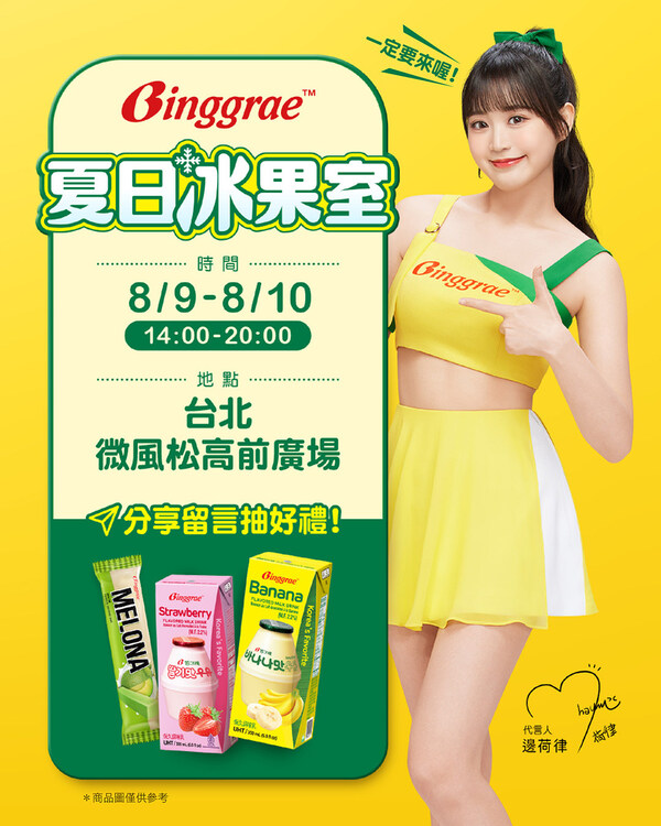 A Binggrae representative stated, “We are incredibly grateful for the ongoing interest and support from Taiwanese consumers, which has helped Binggrae thrive in the market. We hope many people will visit the pop-up store and enjoy a fun, memorable experience.”