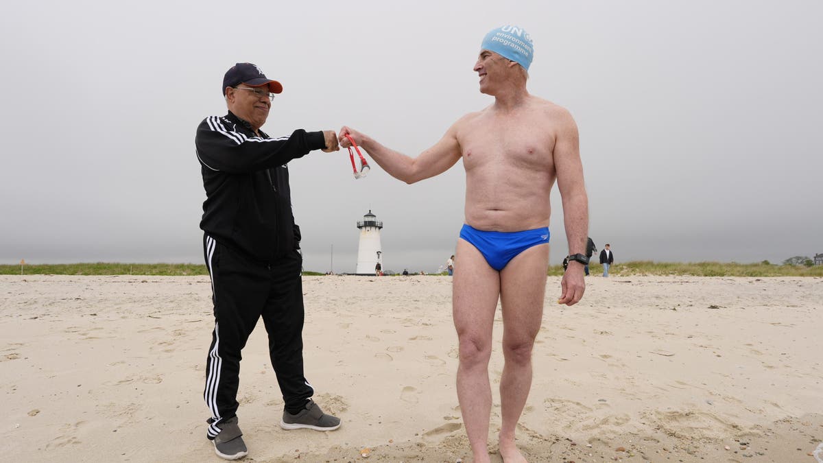 He said that he plans on wearing his usual swimming uniform, which is not a wetsuit. Rather, he’ll be wearing just trunks, a cap and goggles, he said.