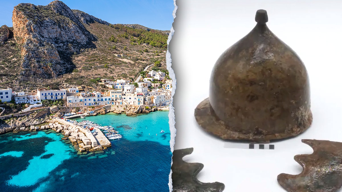 A bronze Montefortino-type helmet, dating to the First Punic War, was recently recovered off the Aegates Islands in Sicily. (iStock; Regione Sicilia)