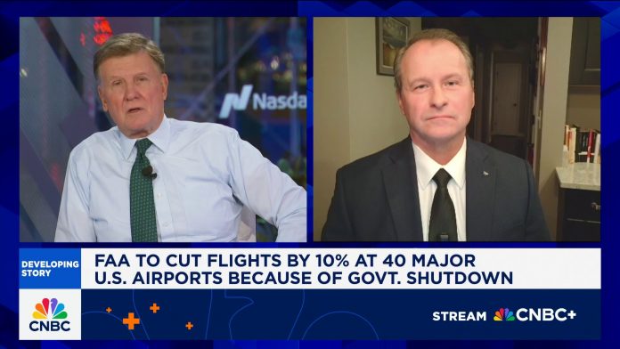 Dennis Tajer, American Airlines pilot and Allied Pilots Association spokesman, joins ‘Squawk Box’ to discuss the impact of the ongoing government shutdown on air travel, news of the FAA cutting flights by 10% at 40 major airports starting Friday, impact of flight reductions on travel, whether flying remains safe, and more.