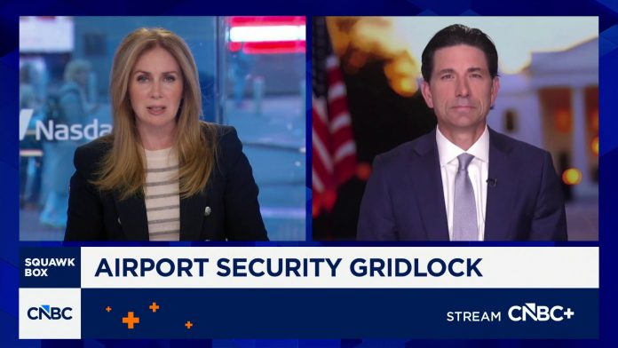 Chad Wolf, America First Policy Institute homeland security chair and former Acting DHS Secretary, joins ‘Squawk Box’ to discuss the impact of the partial government shutdown on TSA staffing, how staffing shortages is causing long lines at delays at some U.S. airports, and more.