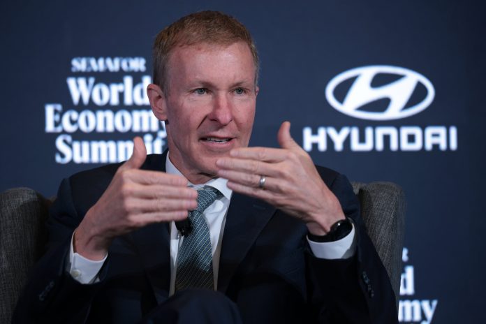 CEO of United Airline Scott Kirby speaks during the Semafor 2025 World Economy Summit at Conrad Washington on April 24, 2025 in Washington, DC.